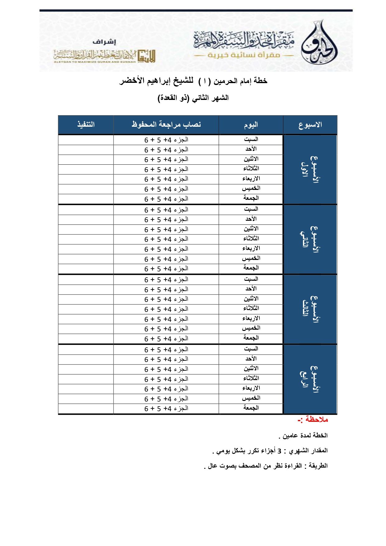 خطة أ لبرنامج الراسيات لتثبيت الآيات شهر ذو القعدة