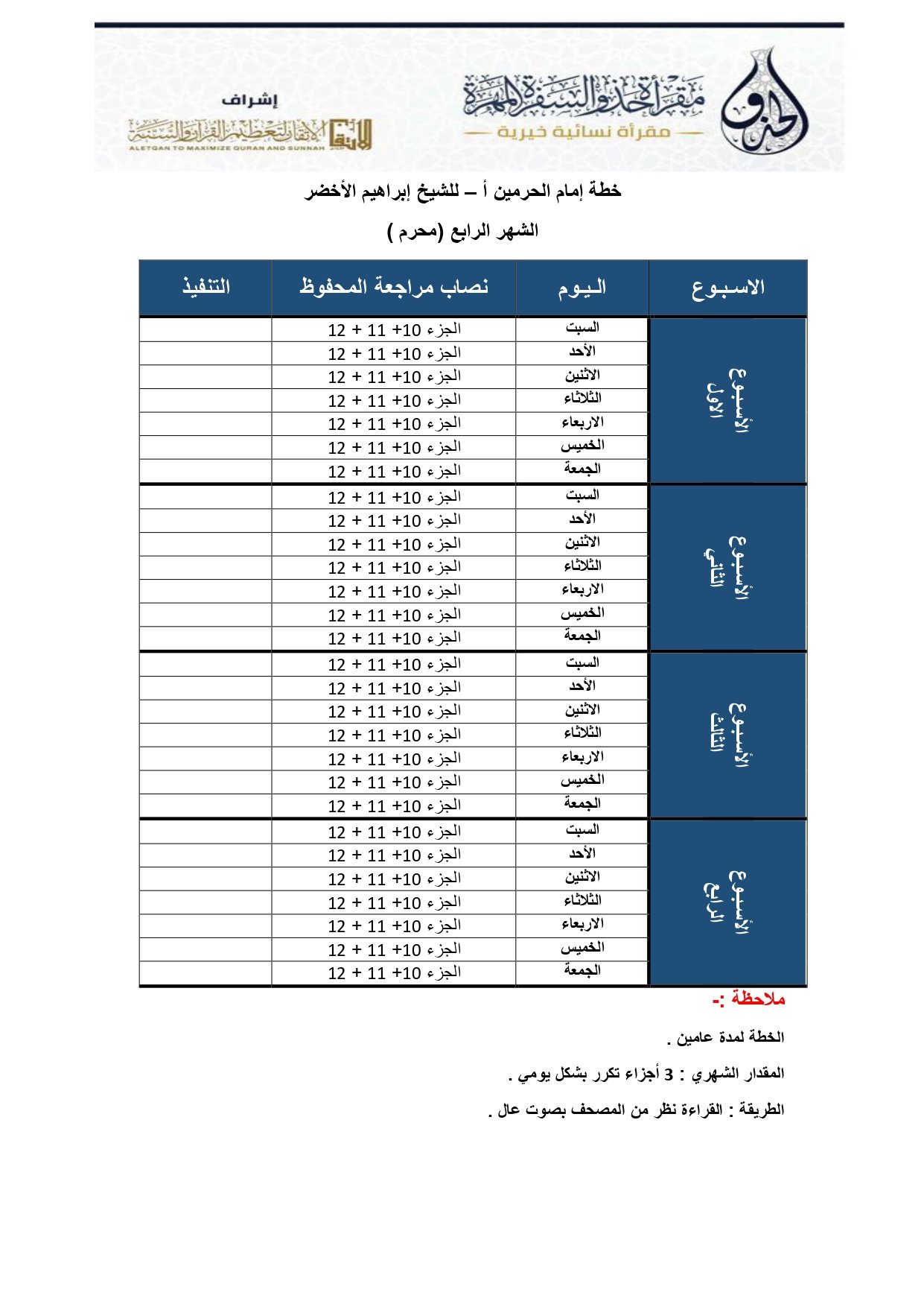 خطة أ لبرنامج الراسيات لتثبيت الآيات شهر محرم