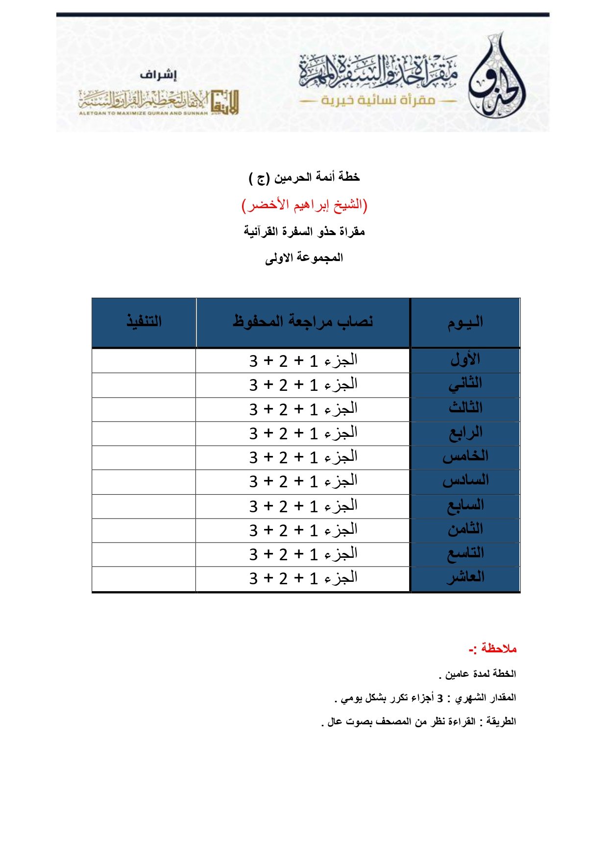 خطة ج لبرنامج الراسيات لتثبيت الآيات المجموعة الأولى