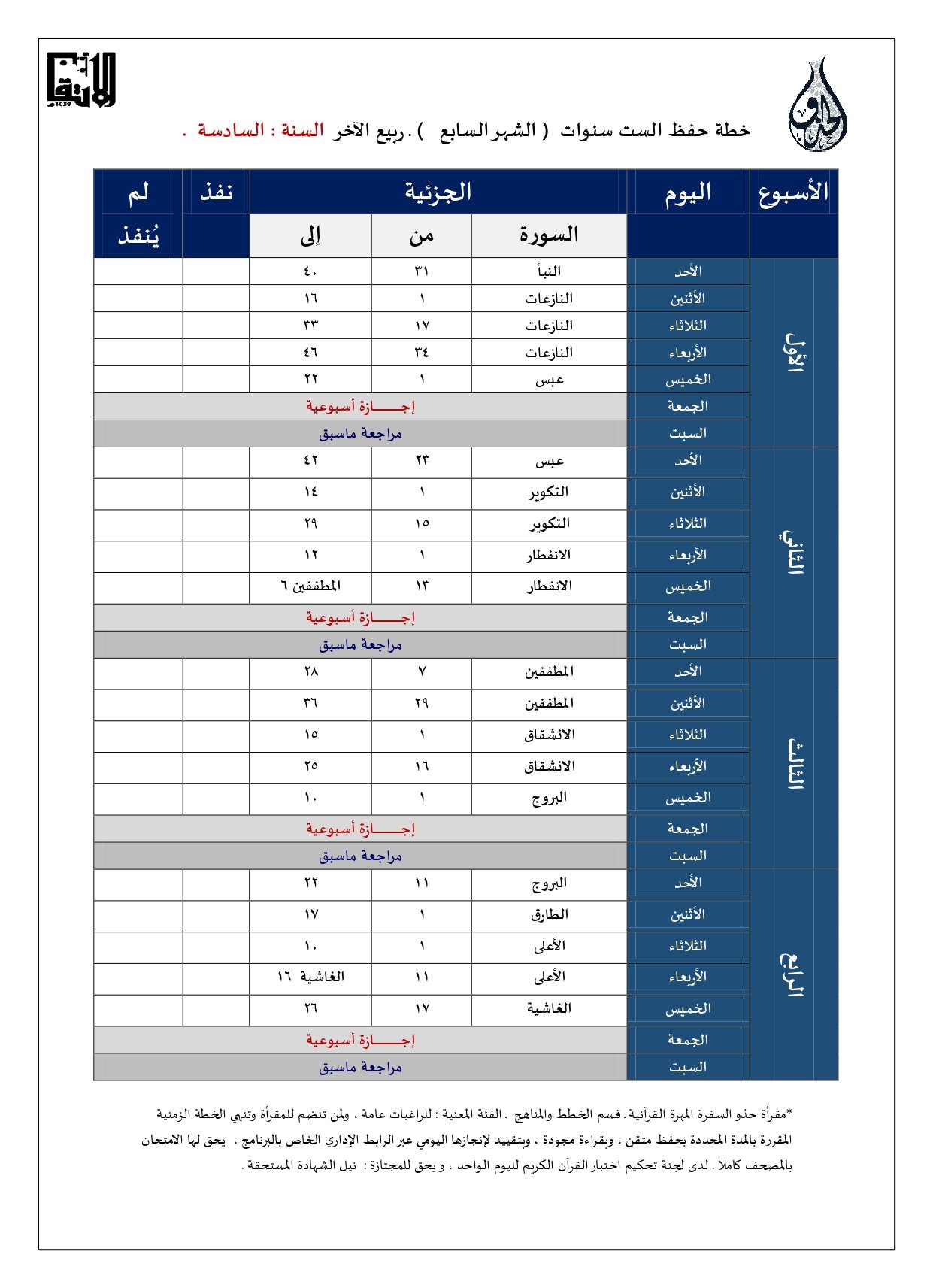 خطة الشهر السابع والستون
